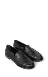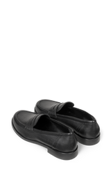 Klassisk penny loafer i glat, sort skind med et elegant og tidløst udtryk. Den enkle silhuet, rene syninger og den lave hæl gør modellen alsidig og perfekt til både arbejde og mere formelle anledninger.