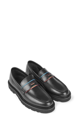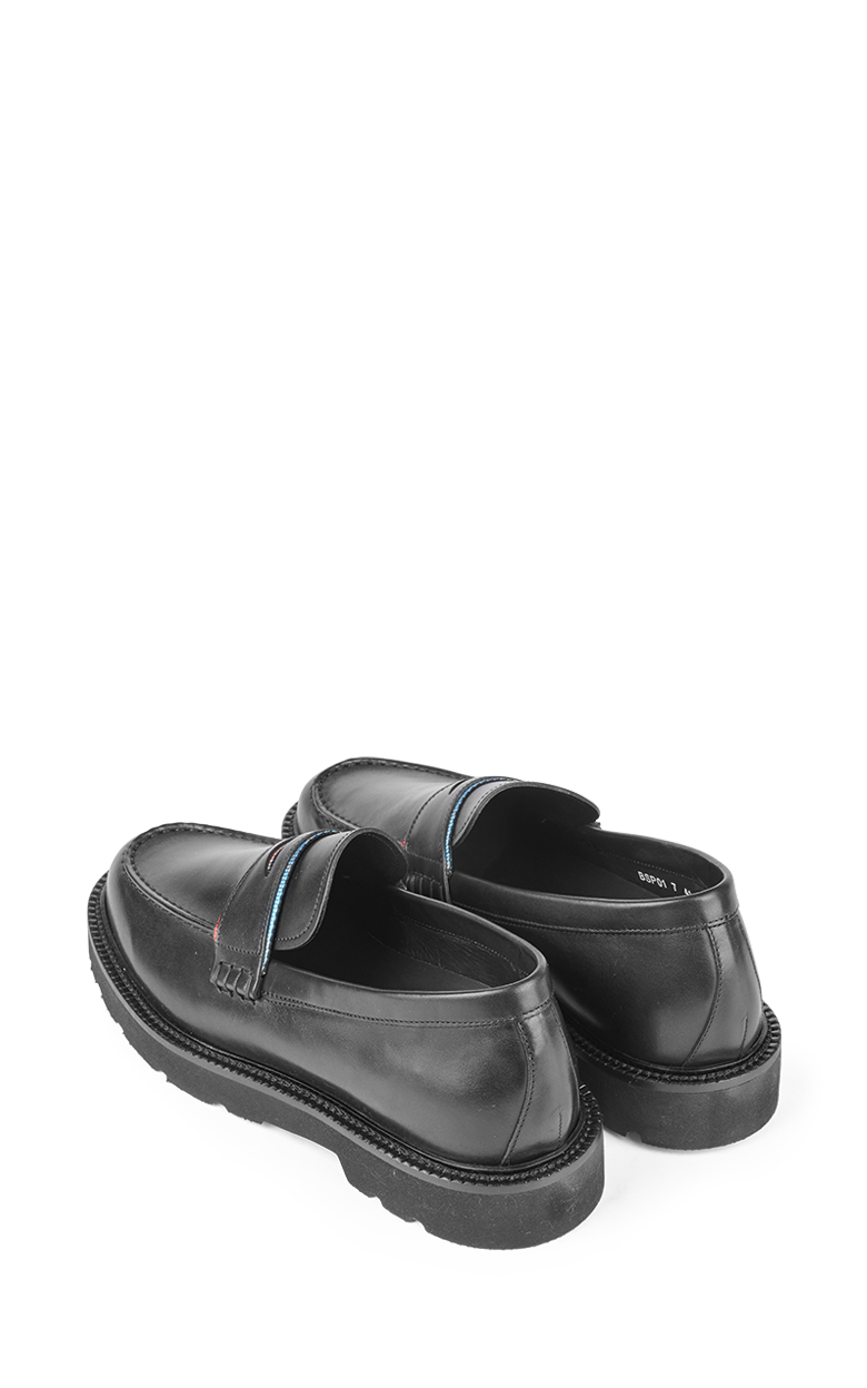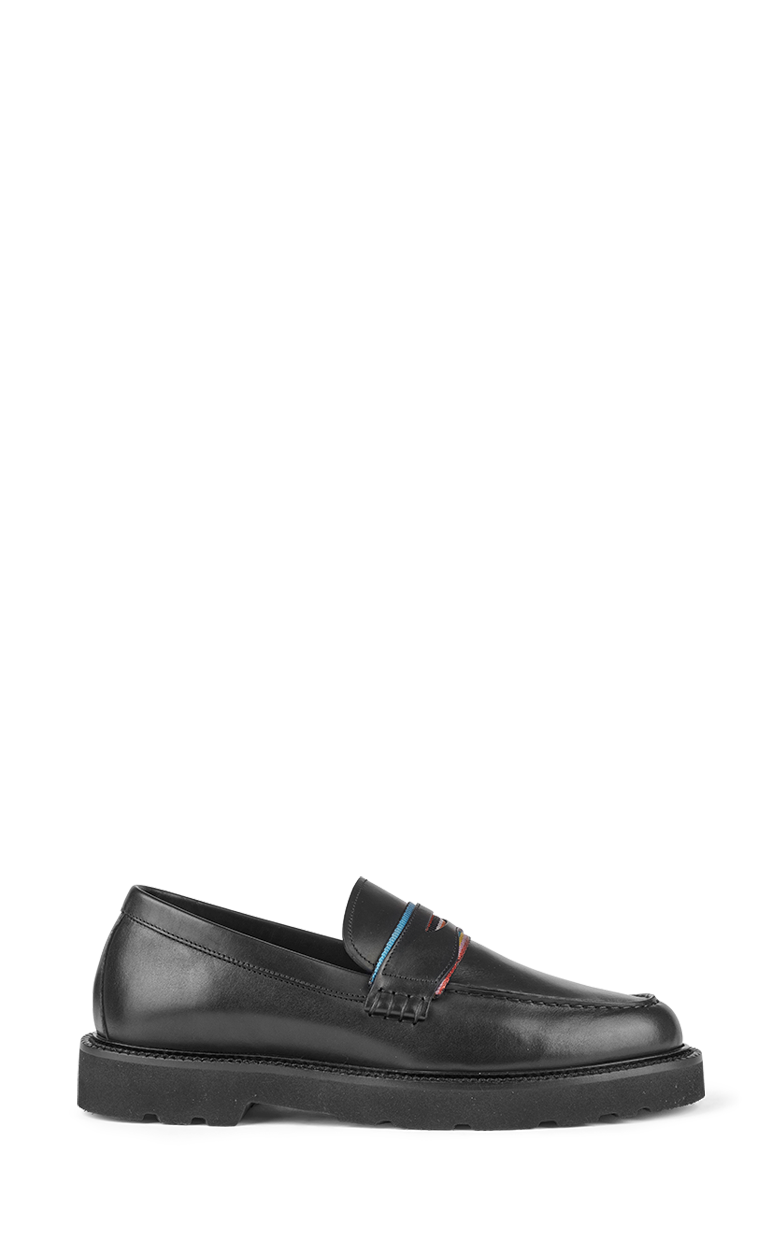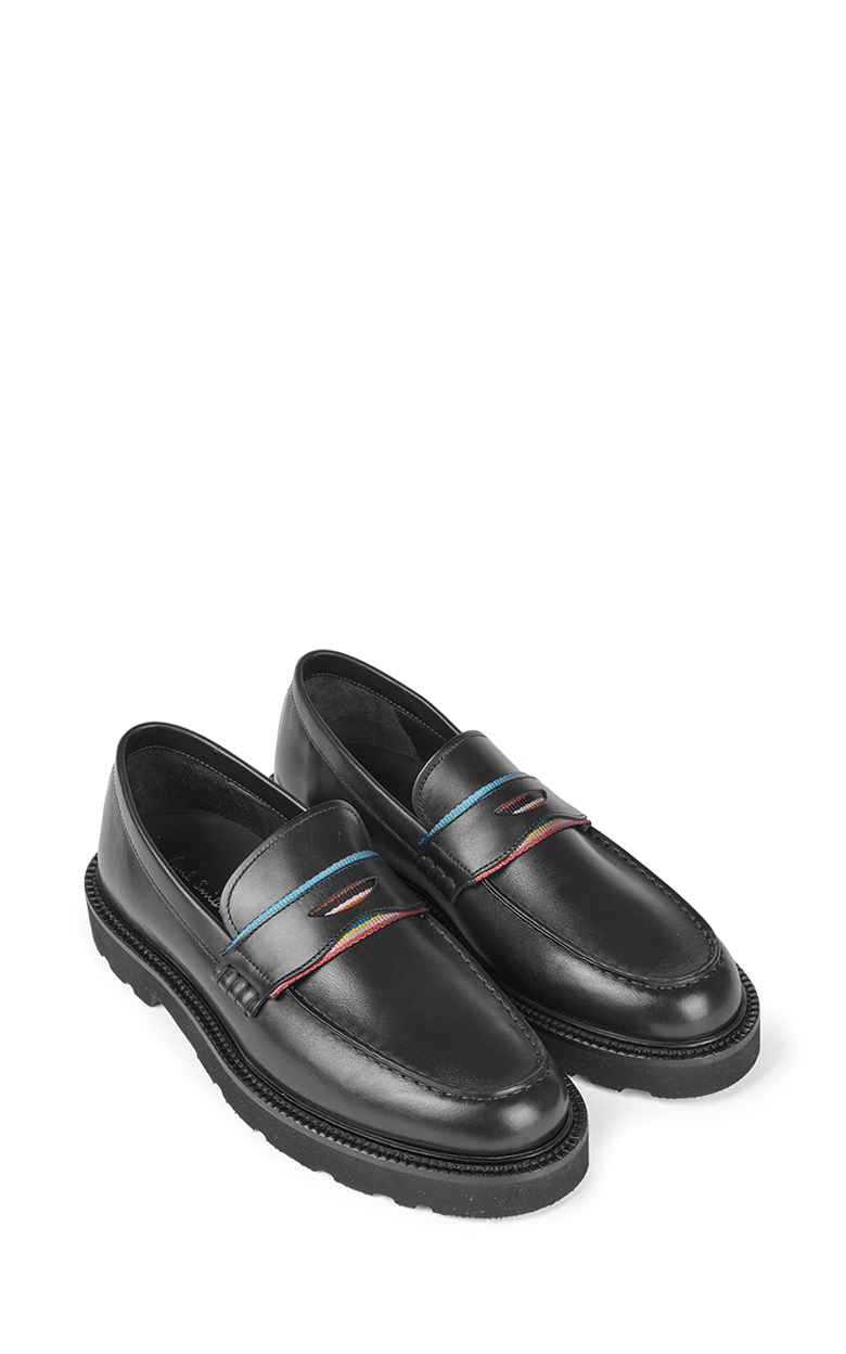 Eksklusive sorte loafers fra Paul Smith i premium læder, designet med en klassisk og elegant silhuet. Den rene linje og de raffinerede detaljer skaber en tidløs sko, der passer perfekt til både formelle og afslappede outfits.