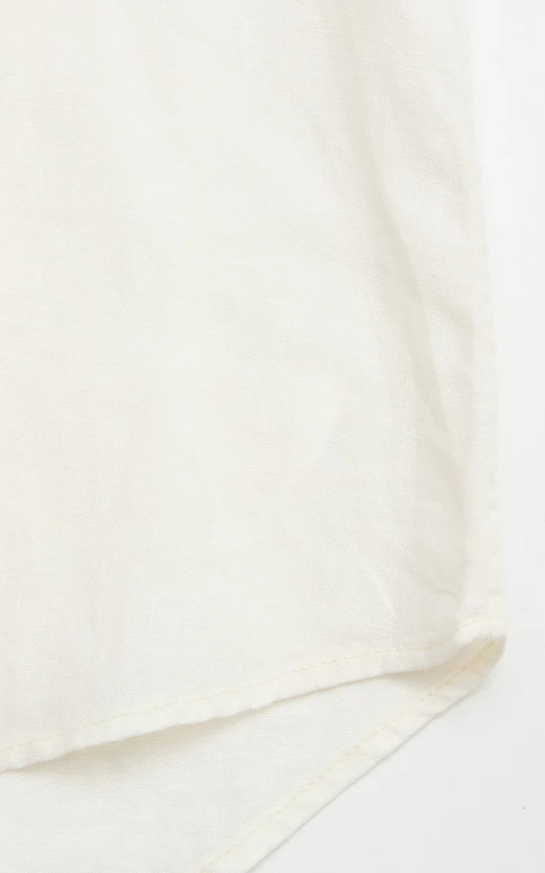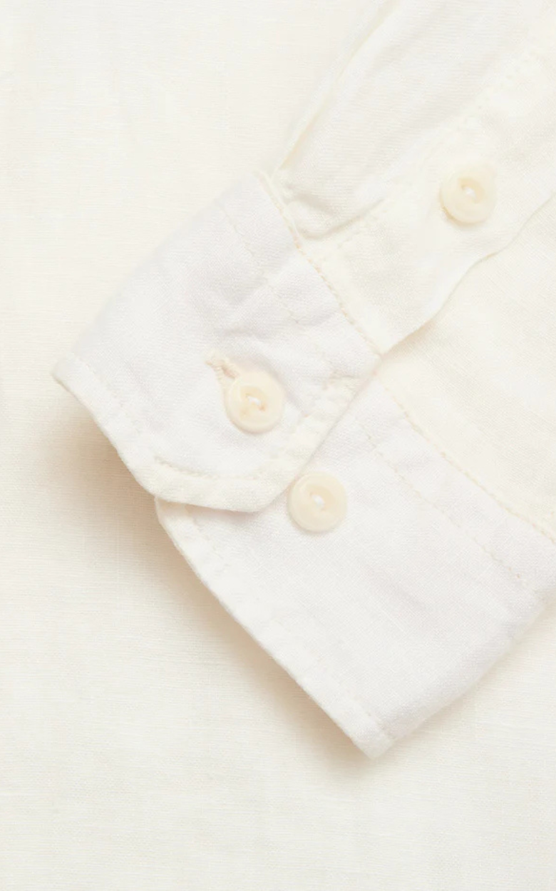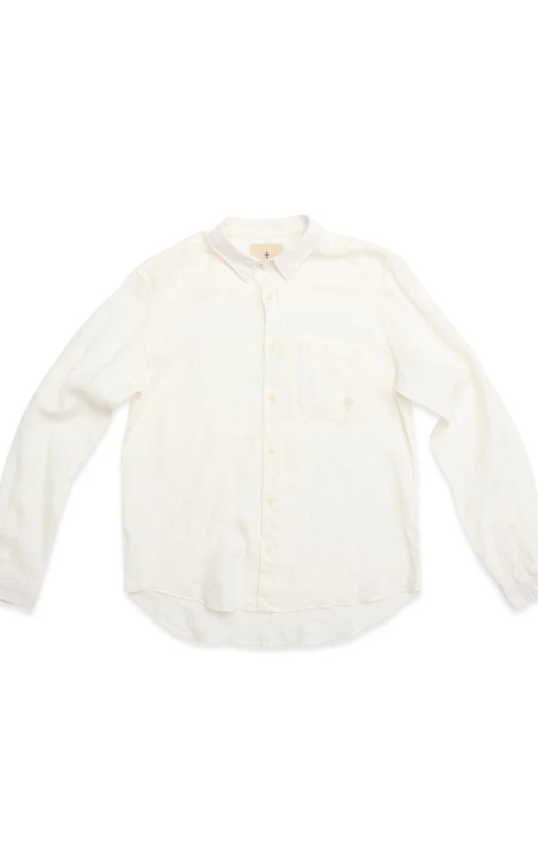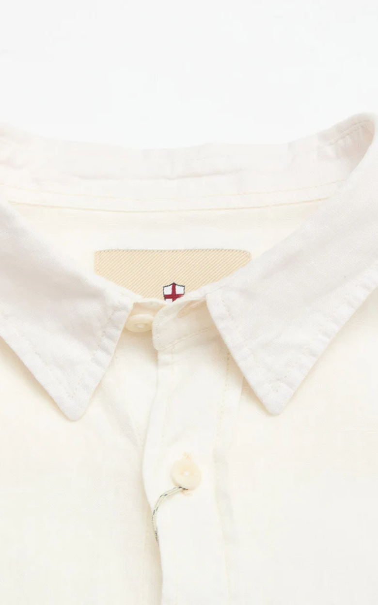 En stilren skjorte skabt til varme dage med et raffineret og afslappet udtryk. Skjorten er designet i en klassisk silhuet med en moderne cut away-krave, der giver et skarpt look – både når den bæres åben eller styles mere formelt. Den er fremstillet i 100% hør og rinse-washed for en ekstra blød fornemmelse, samtidig med at den bevarer hørens lette og åndbare struktur. En brystlomme med diskret skjoldbroderi tilfører et signaturpræg, mens corozo logoknapper fuldender designet med en naturlig og holdbar finish.