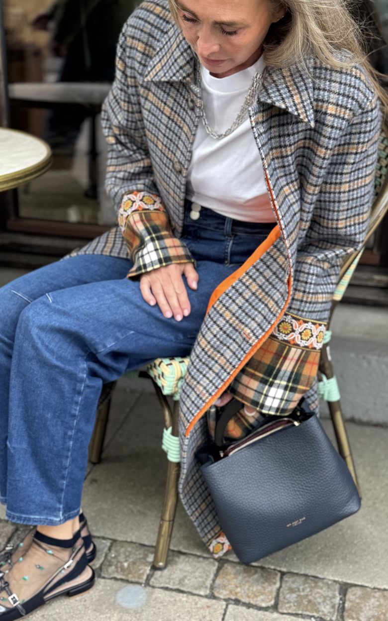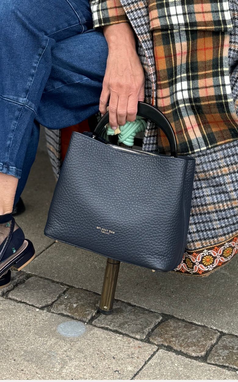 Elegant og tidløs taske i struktureret læder med et eksklusivt og minimalistisk udtryk. Tasken har en smuk, fast form og en kort hank, der giver et sofistikeret look – perfekt til både hverdag og mere dressede anledninger.