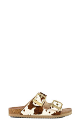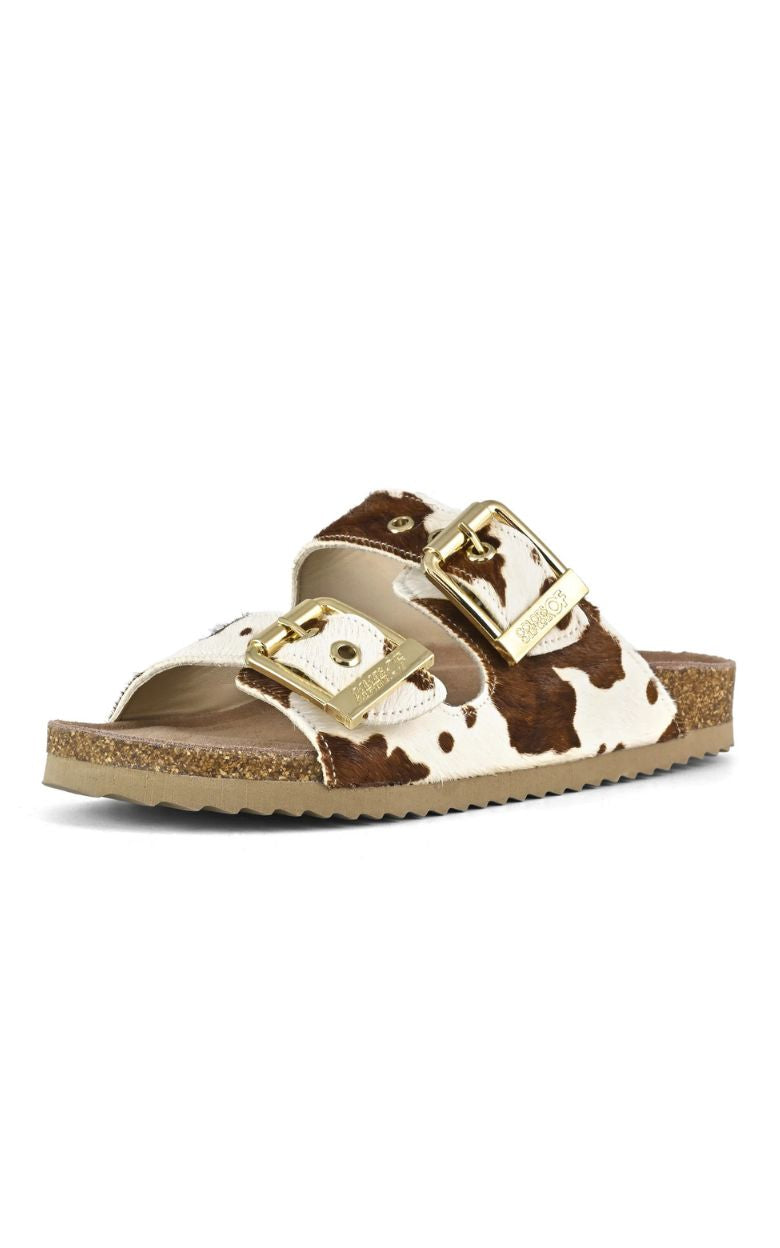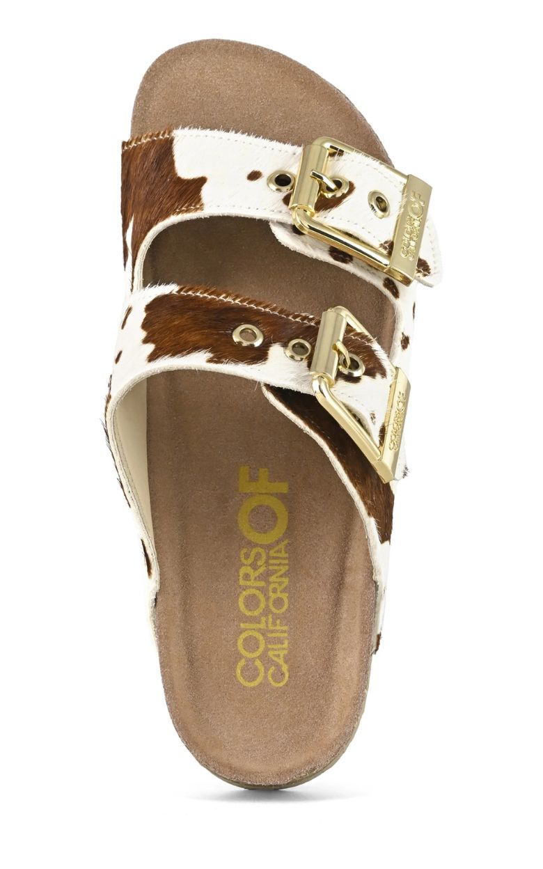 Cool sandal fra Colors of California i koprint. Sandalen har to brede remme der er justerbare med to store guld spænder.