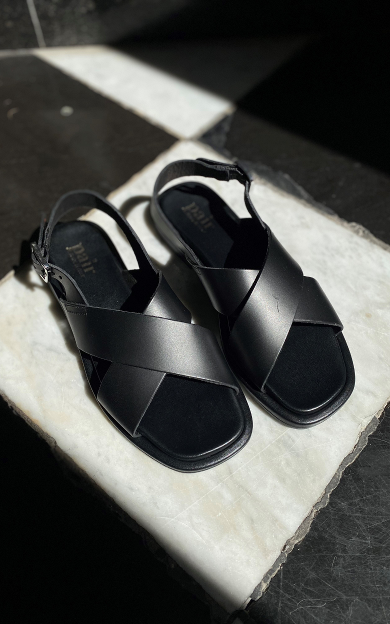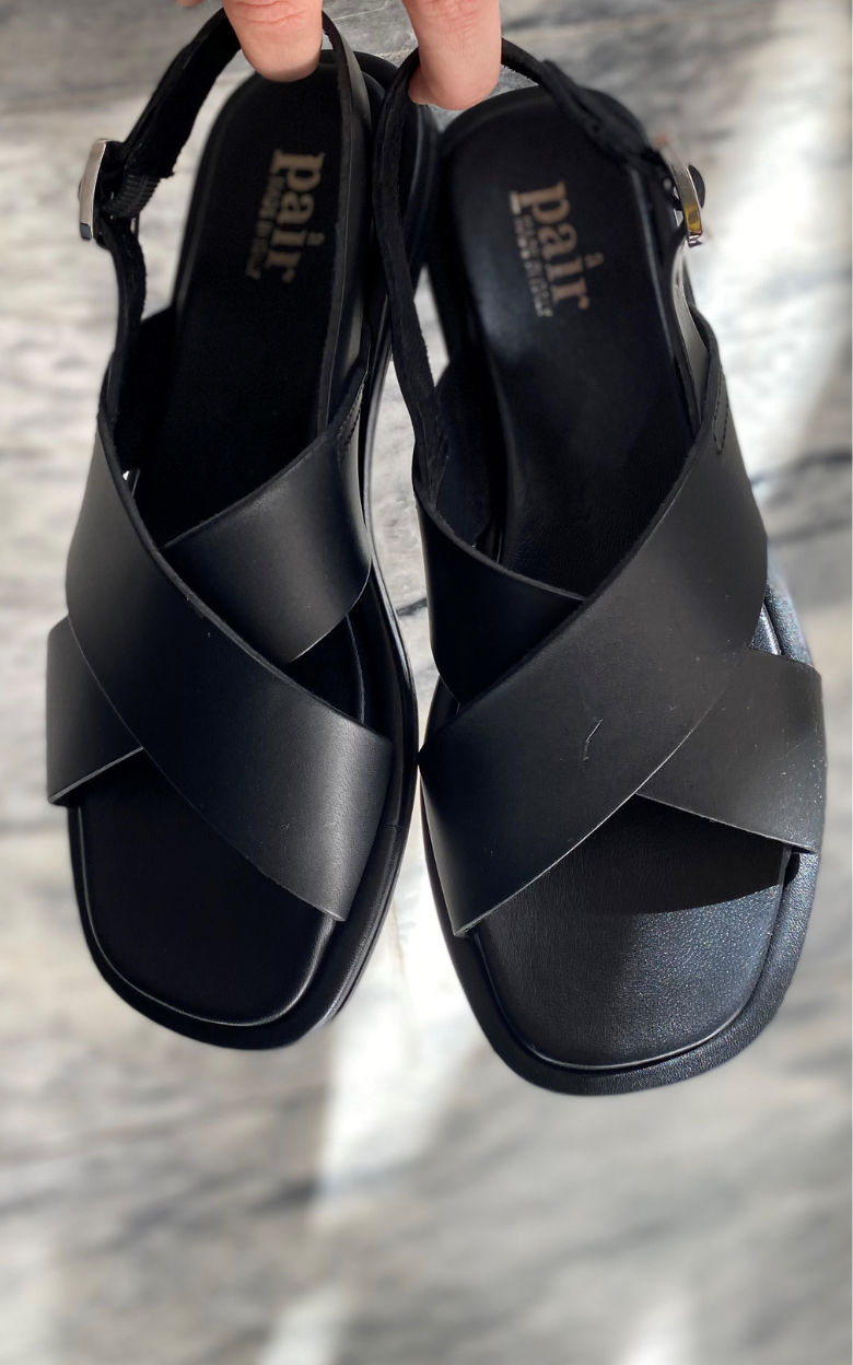 En klassisk tidløs Apair lædersandal. Både sål og krydsbånd er lavet i italiensk kalveskind. Sandalen har justerbar lukning.
