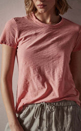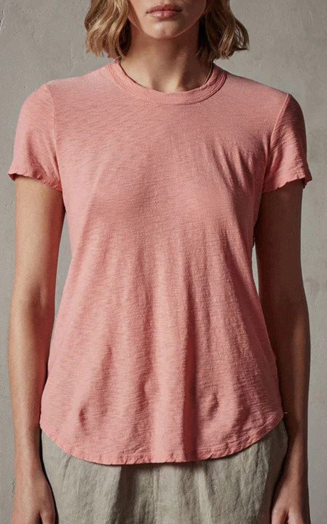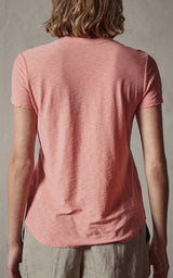 Denne Flamingo-t-shirt er lavet i 100% bomuldsslub. Stylen er tilpasset kroppen med en bundet rund halsudskæring og en buet bundkant. Beklædningsgenstand farvet i ekstra blødgøringsmidler for en blød fornemmelse.