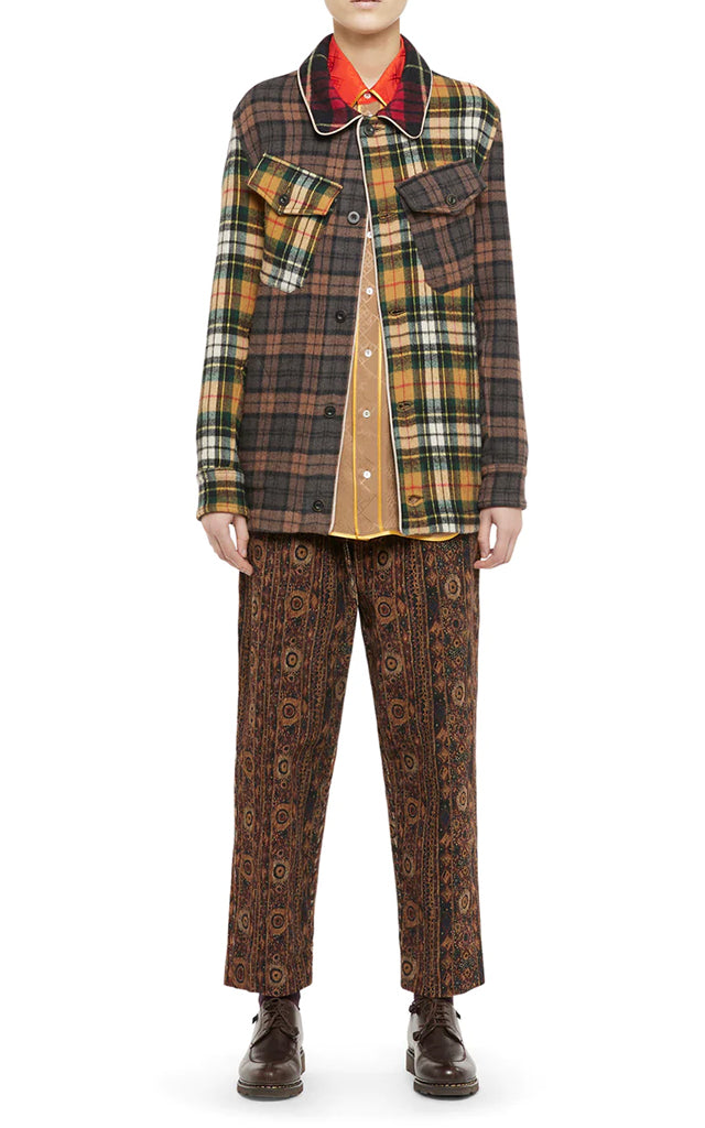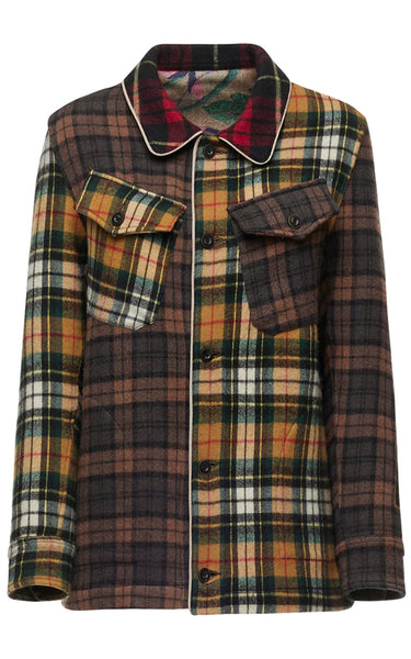 Smuk dobbeltsidet med ternet mønster i uld. Jakken har to skrå forlommer og er lavet i forskellig farvet ternet mønster, hvilket gør den til den perfekte cool efterårs/vinter overskjorte/jakke.