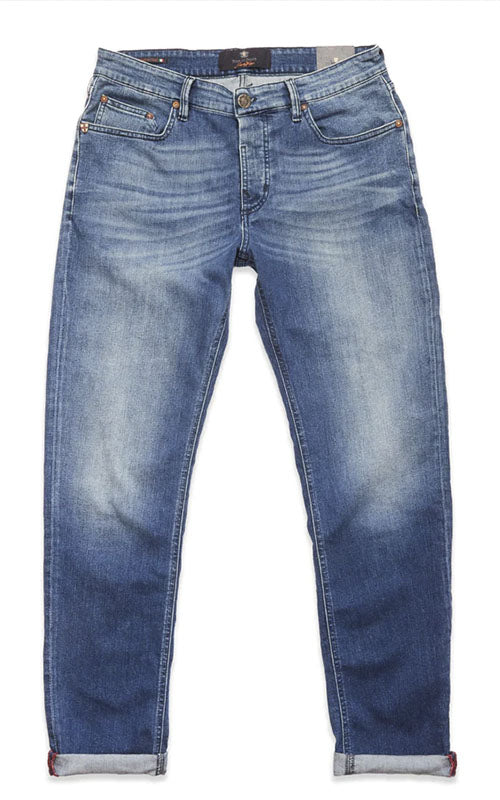 Vinci jeans tilbyder en normal pasform med en let tilspidset silhuet. Denne fem-lommers jean har parallelle og forede baglommer, knapgylp, trykt lommefor, stingdetaljer og italiensk flagbroderi på højre baglomme.