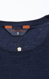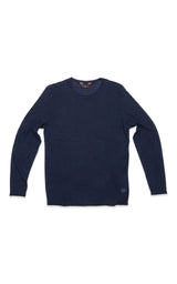 En let langærmet trøje med rullekant ved hals og ærmer. Strikket er i en bomuld/hør-blanding kvalitet. Super blød på grund af bomuld og den naturlige struktur i garnet på grund af hør.