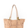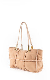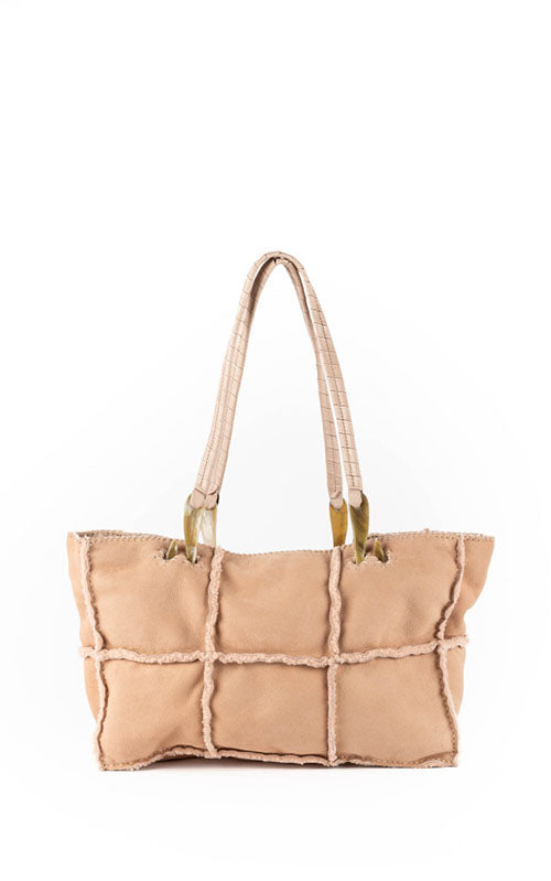 Jonu M er en alsidig hverdagstaske, der problemfrit kombinerer praktisk med stil. Håndlavet udelukkende af et patchwork af smidige læderfirkanter, er det et vigtigt tilbehør med en distinkt æstetik. De håndsnoede håndtag, der er fastgjort med hornkroge, fremhæver dets håndværksmæssige håndværk.