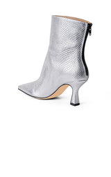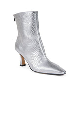 Advarsel - Disse støvler vil få dig til at skinne. Vi elsker disse spidse sølvstøvler fra Apair i et imiteret slangeprint. Perfekt til at tilføje lidt glimmer til ethvert outfit. Støvlerne er designet med lynlås i ryggen og en 6 cm hæl.