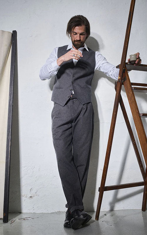 Style med den matchende vest, en skjorte og et par cool sko eller loafers.