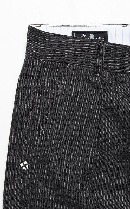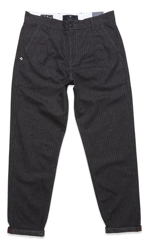 Bravuomo chinoen har en unik afslappet pasform med rummelige ben, der tilspidser forneden. Enkeltvendte læg foran, lynlåslukning og 4 lommer. Bomuldsblandingsstoffet har en uregelmæssig nålestribe hvilket gør bukserne både klassiske og afslappede.