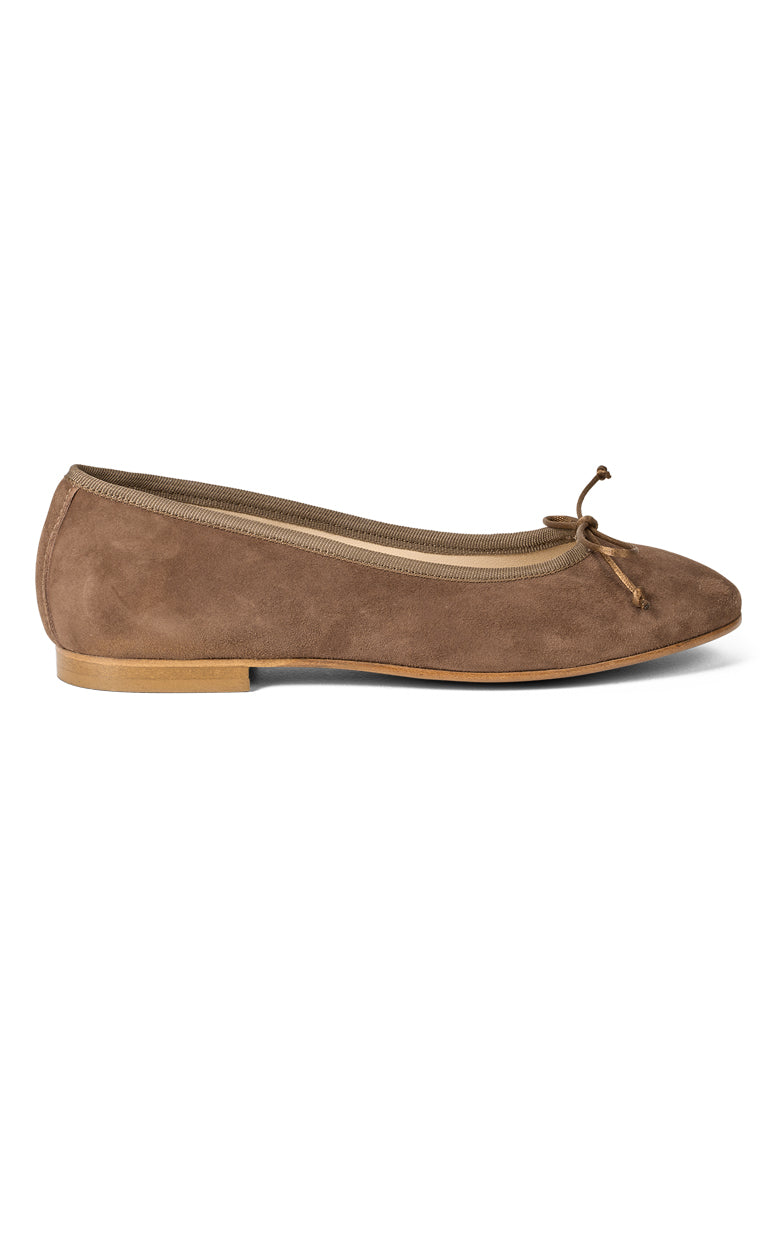 Ballerinasko er yndige, stilfulde og behagelige. Kan bruges til både hverdag og festlige lejligheder. Disse smukke mocca ruskind er perfekte til et blødt og stilfuldt forårslook.