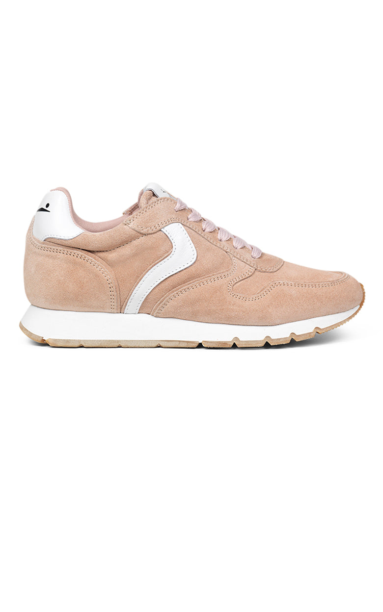 En klassisk Volie Blanche sneak i blødt rosa ruskind med hvide detaljer og sål - og rosafarvet snørebånd. En perfekt forår/sommer sneak for en behagelig pasform og et let og blødt look.
