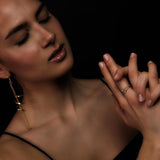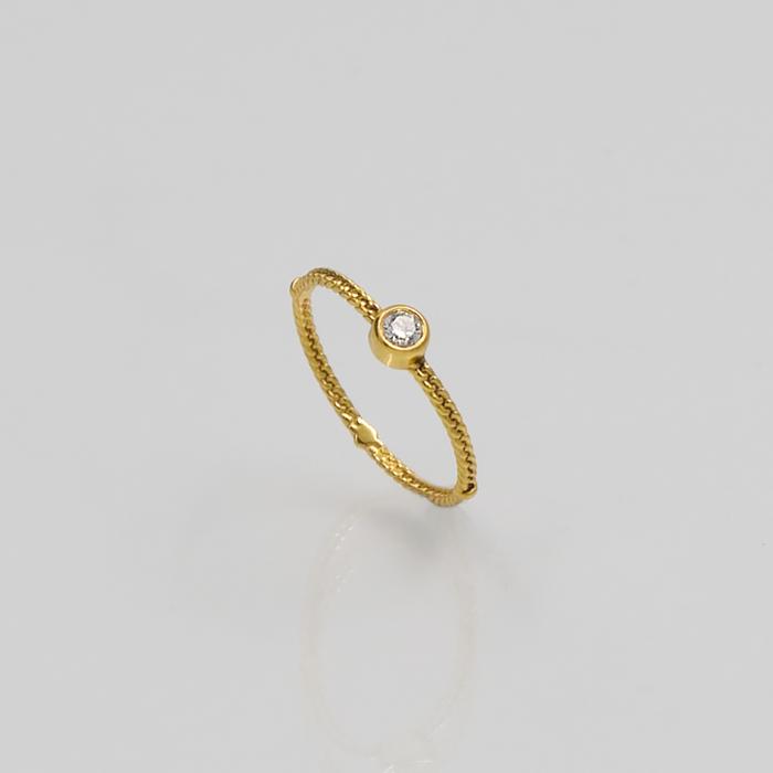 Fin 24 karat forgyldt sterling sølv kædering med et bæger med en hvid zirkon. Ædelstenen i zirkon i Silent Rain-ringen er på simpel vis indlejret i et lille bæger på en feminin ring, der er udformet i et meget enkelt sammenkædet mønster. Silent Rain visualiserer udtrykket "less is more".