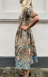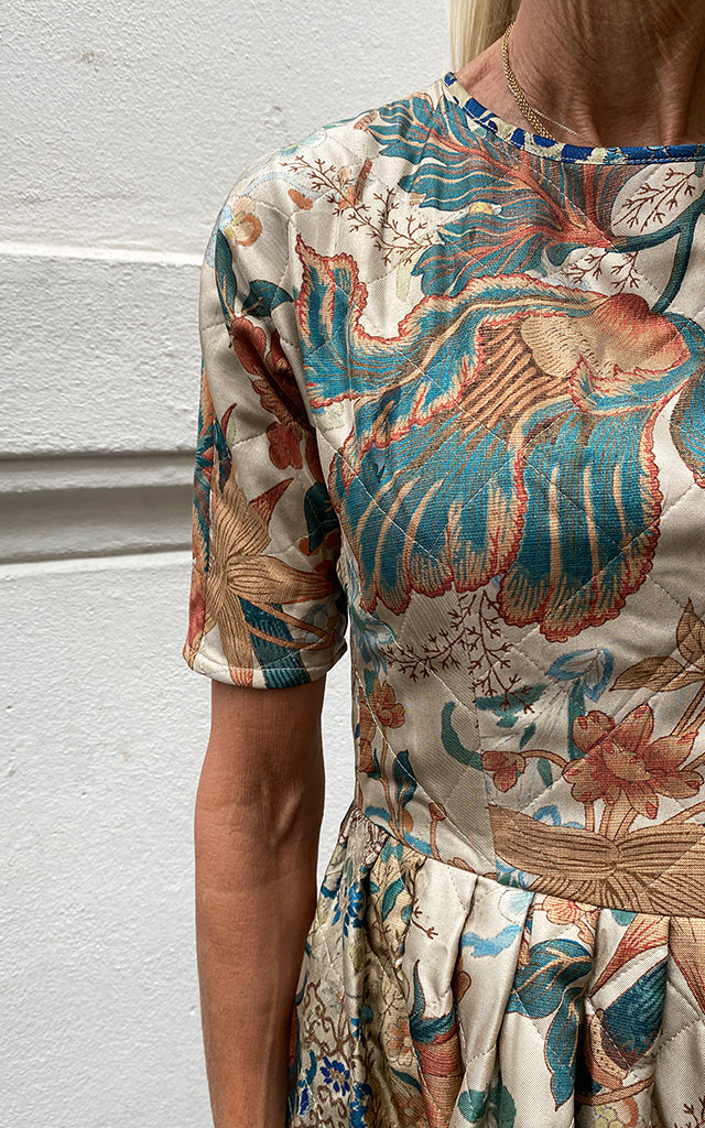 Pierre Louis Mascia kjolen er en smuk skræddersyet kjole lavet af 70% polyester og 30% silke i det smukkeste materiale. Kjolen har fine blomsterdetaljer i forskellige flotte farver, der fremhæver de rigtige former og sidder perfekt på kroppen.