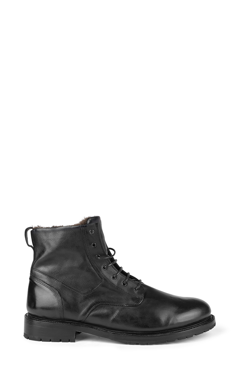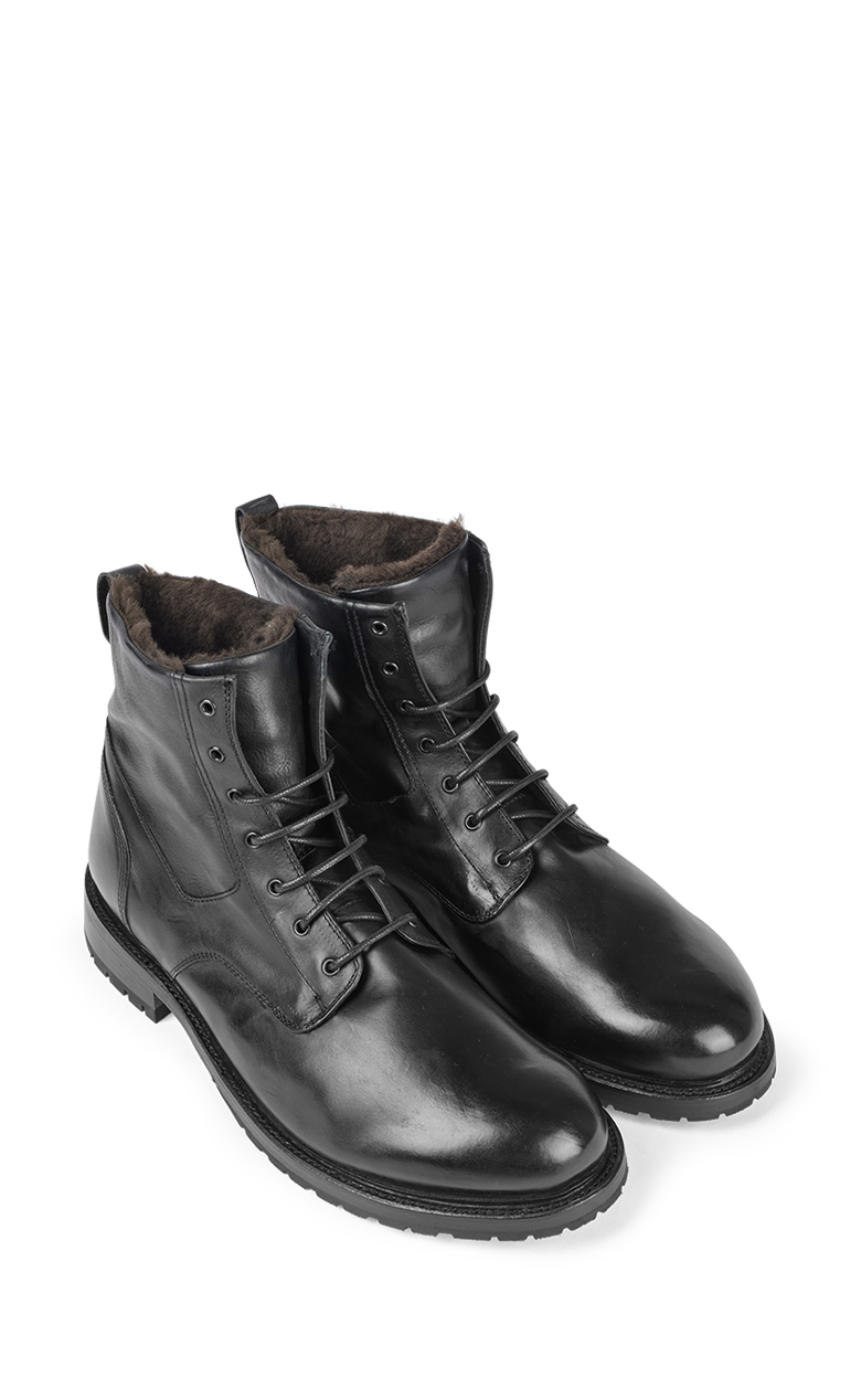 Eksklusive herre snørrestøvler fra Cordwainer i sort premium læder, designet med en klassisk silhuet, der går op over anklen. De elegante snørebånd sikrer optimal pasform, mens den polstrede indersål giver komfort hele dagen.