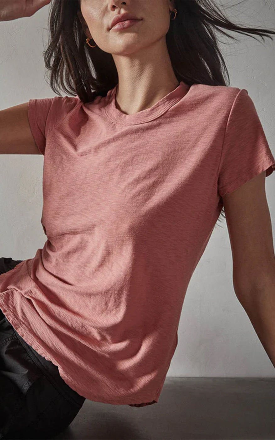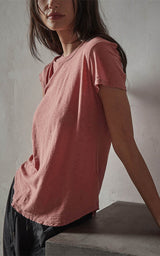 Dette er vores favorit t-shirt, da den har en perfekt pasform & supre lækker bomulds kvalitet. James Perse Sheer Slub Crew Neck Tee har rund hals. Bagsiden af stoffet er blevet brugt på ydersiden af tøjet for at tilføje tekstur og dimension.