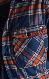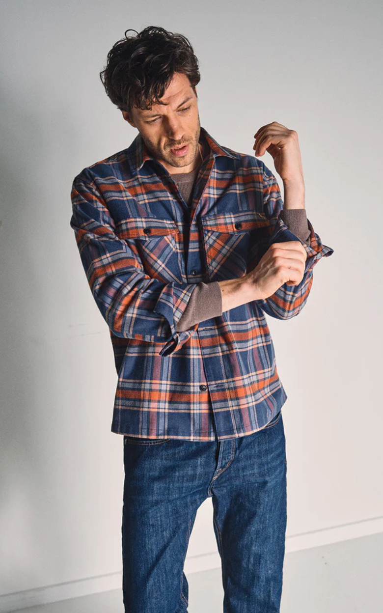 Yodo Check Overshirt er et alsidigt lag-på-lag-item til sæsonen. Skjorten er skåret i en relaxed fit og detaljeret med to store brystlommer med klapper for et funktionelt udtryk. Fremstillet i blød moleskin og garment dyed for et naturligt, indarbejdet look, kombinerer den afslappet komfort med tidløs karakter. Afsluttet med subtile detaljer som sorte Corozo-logo-knapper og det ikoniske Blue de Gênes-flagpin.